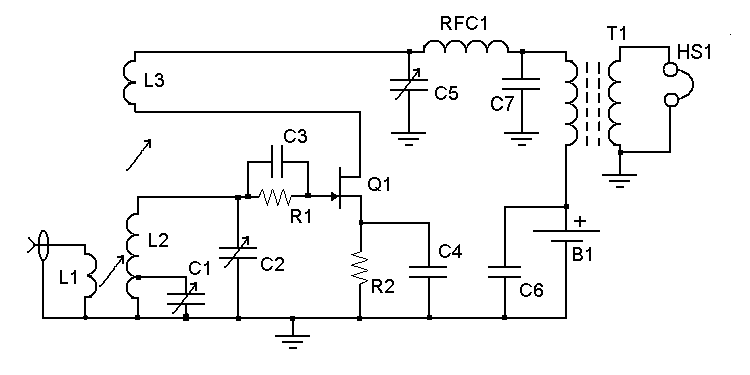 Notice that this detector uses an RC network in the gate circuit. Kitchin used it, so I did too, but I have since found that sensitivity is better without it so my newer designs don't have these parts. I think their inclusion in FET detector designs is because there has been a perception in the ham community that detection occurred in tube-type detectors by means of rectification in the grid circuit, more or less in the manner of the famous grid-leak detector. A tube is just a "glassfet," so a FET should work the same way. But FET "grids" don't "leak" (especially if they are MOSFET's.) I think that detection in an Armstrong circuit is a result of natural nonlinearities in the amplifier that are made even worse by the regeneration. Let me know if you think I'm wrong about this.